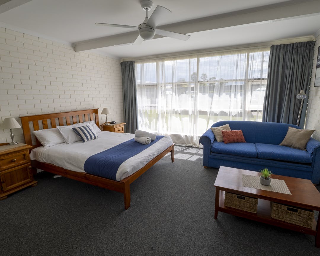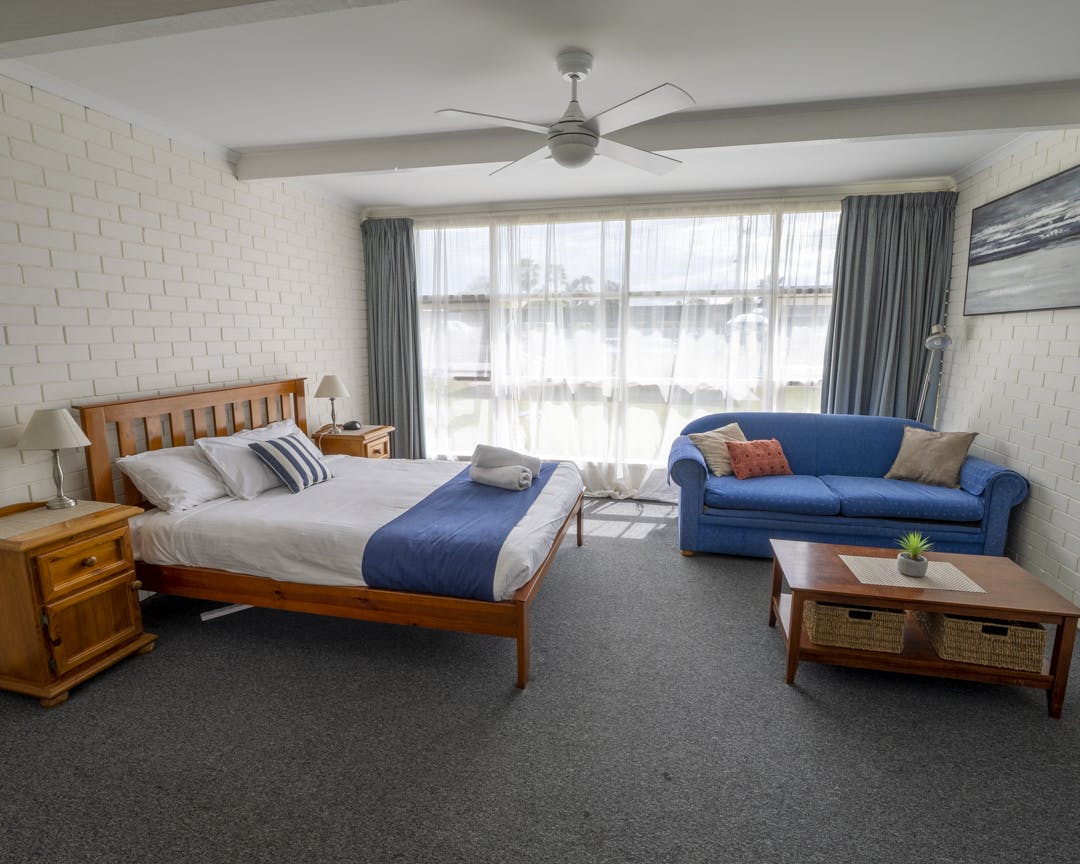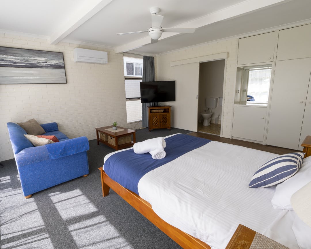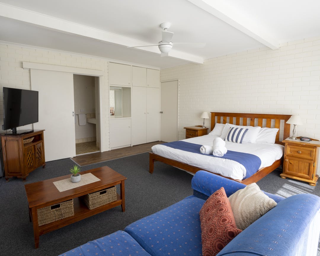 Well appointed one bedroom apartment with floor to ceiling windows overlooking the heated pool, garden and large grassed area. Boasting an open plan living featuring, lounge area, dining setting, smart flat screen TV, air conditioning and a well equipped kitchen. The bedroom has a queen bed, side tables, built in wardrobe, reading lamps and a bathroom with shower, basin and seperate toilet . High quality linen and towels are provided.