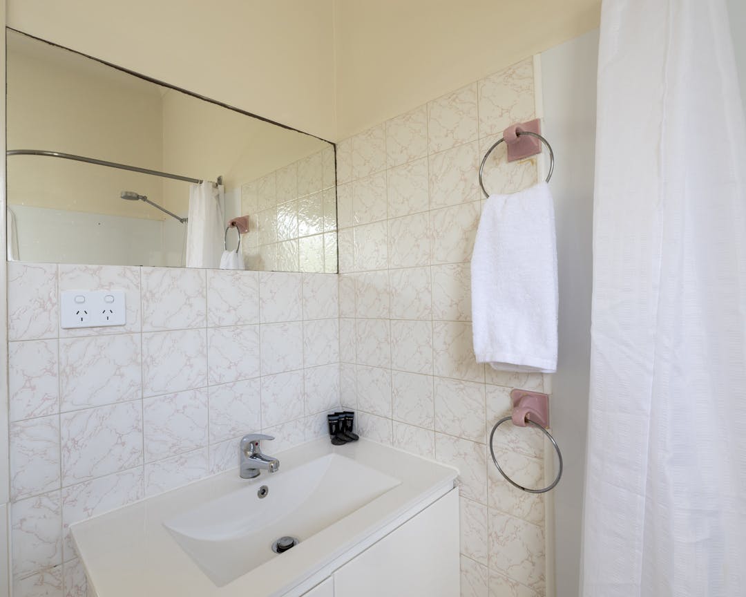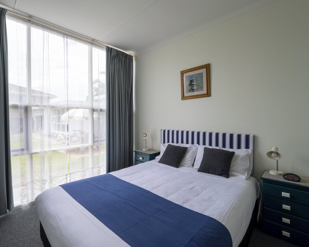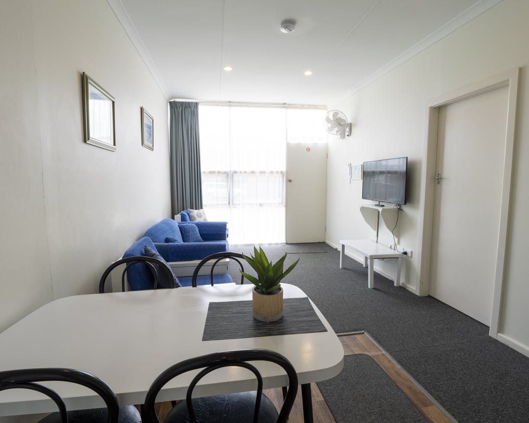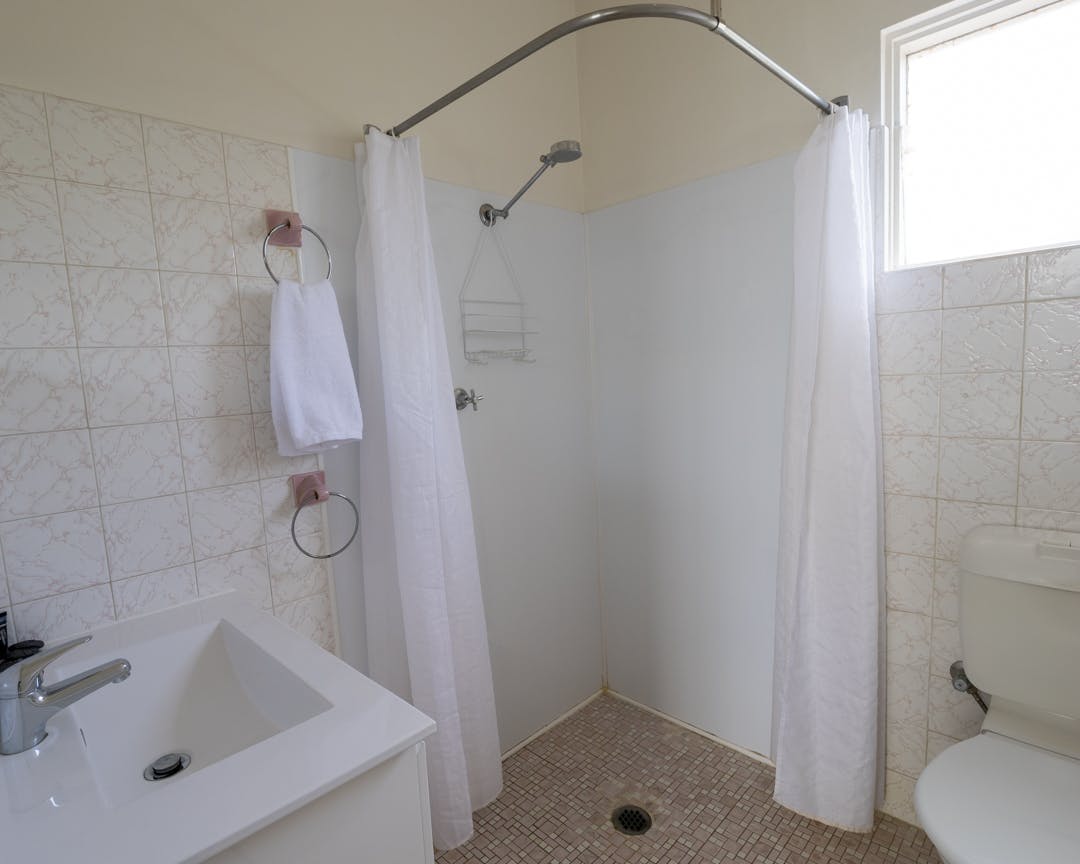 Well appointed and light filled two bedroom apartment with open plan living featuring, lounge, dining table, smart flat screen TV, air conditioning and a well appointed kitchen. The master bedroom has a queen bed and TV and the second bedroom has two single beds, both have inbuilt wardrobes. A simple and practical bathroom with shower, toilet, vanity and high quality towels and linen are provided. All appartments have large floor to ceiling windows overlooking the pool, garden and grassed communal space. Access to communal laundry provided.
