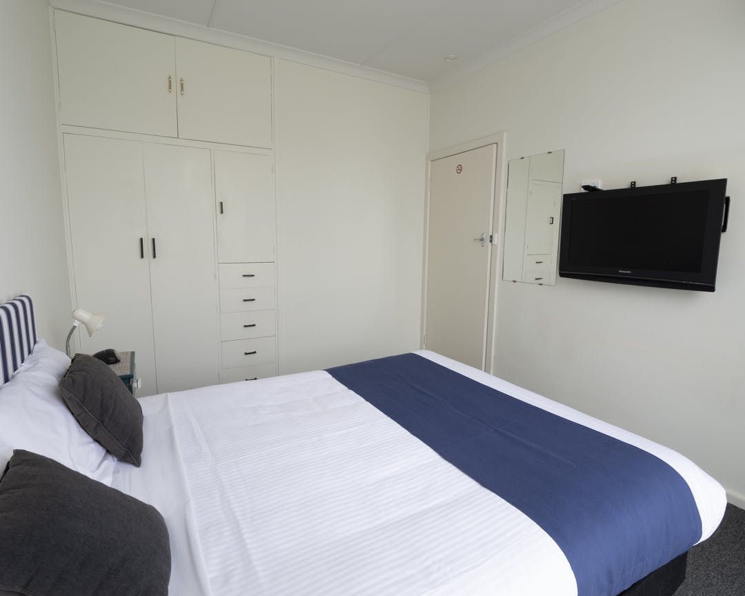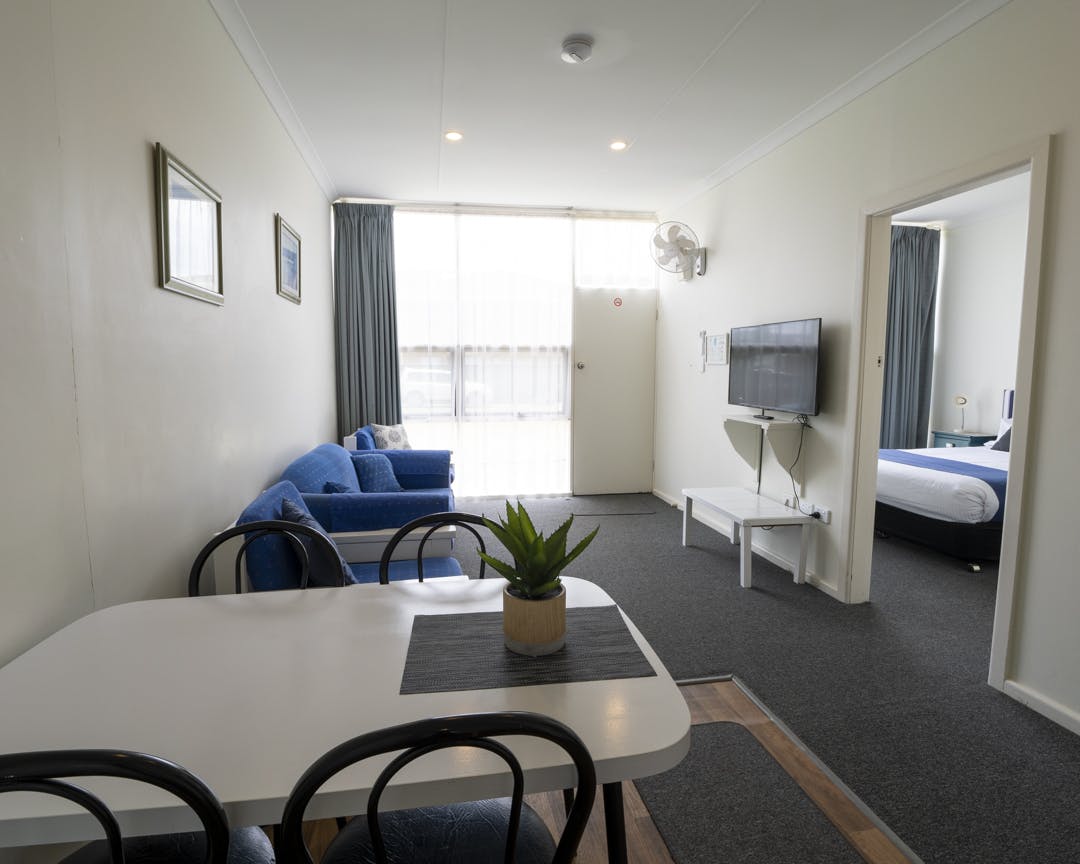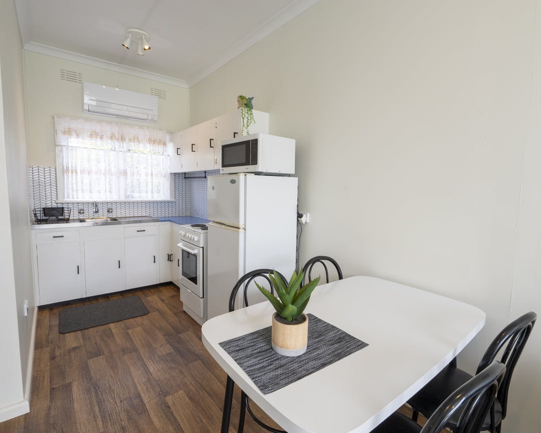 Well appointed and light filled two bedroom apartment with open plan living featuring, lounge, dining table, smart flat screen TV, air conditioning and a well appointed kitchen. The master bedroom has a queen bed and TV and the second bedroom has two single beds, both have inbuilt wardrobes. Bathroom with shower, bath, toilet, vanity and high quality towels and linen are provided. All appartments have large floor to ceiling windows overlooking the pool, garden and grassed communal space. Access to communal laundry provided.