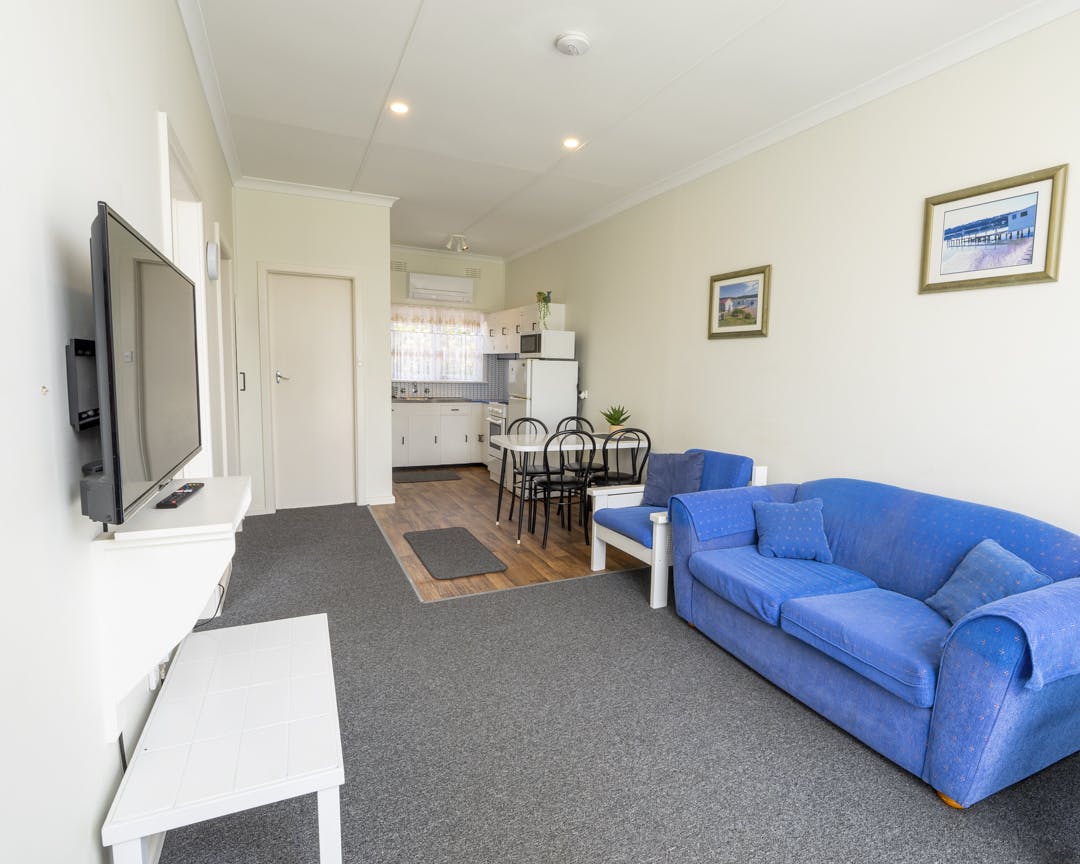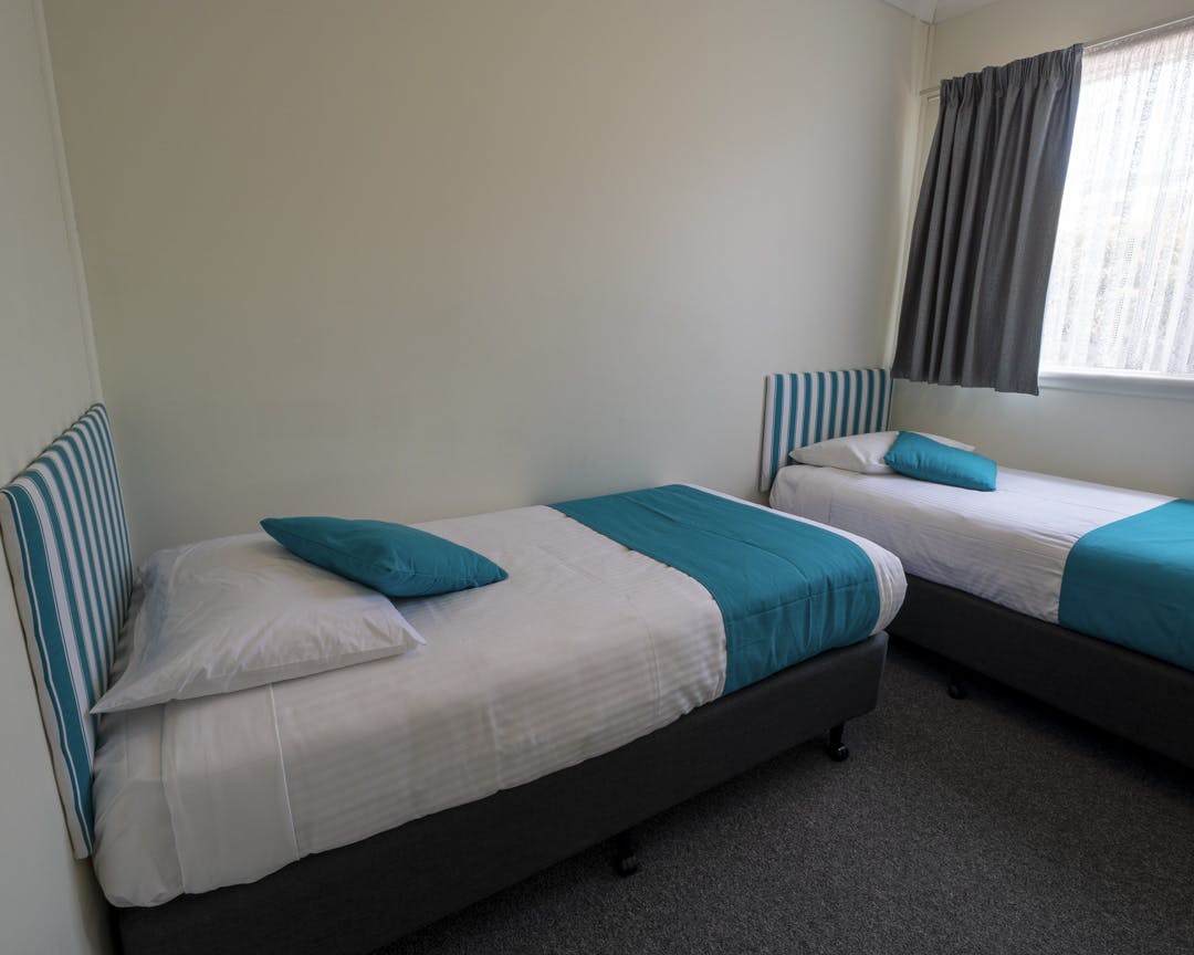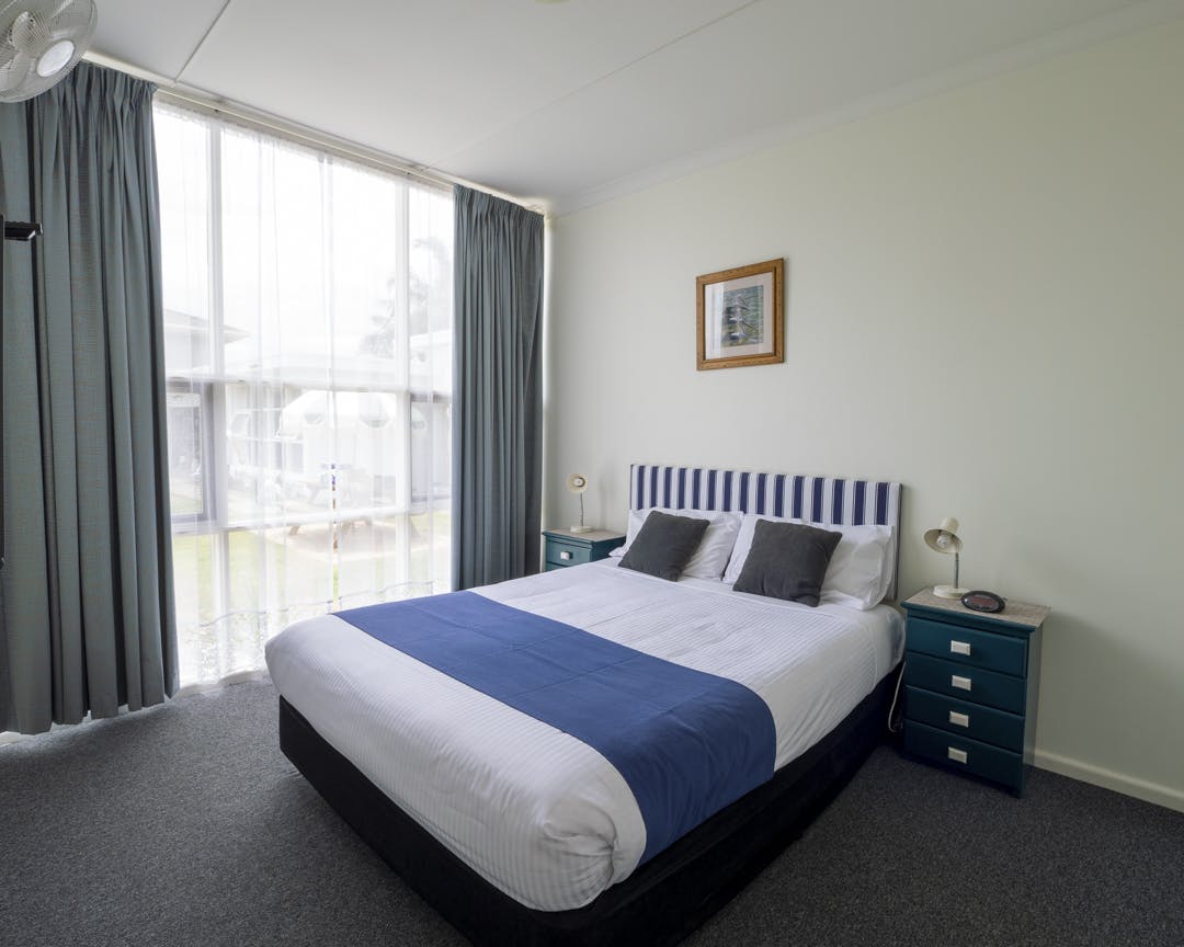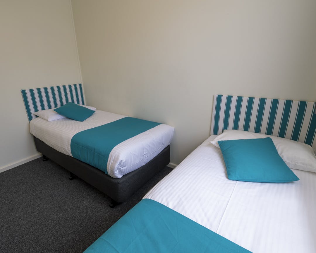 Well appointed and light filled two bedroom apartment with open plan living featuring, lounge, dining table, smart flat screen TV, air conditioning and a well appointed kitchen. The master bedroom has a queen bed and TV and the second bedroom has two single beds, both have inbuilt wardrobes. Bathroom with shower, bath, toilet, vanity and high quality towels and linen are provided. All appartments have large floor to ceiling windows overlooking the pool, garden and grassed communal space. Access to communal laundry provided.